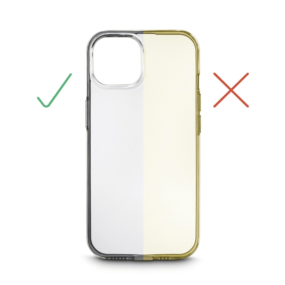 What good is the most beautiful iPhone if the transparent protective case turns an unattractive yellowish colour over time? Exactly! We have designed our "Always Clear" mobile phone case with a special material composition that prevents yellow discolouration for a long time. Our quality assurance department has tested these material components extensively, e.g. in a DIN-certified test procedure in a climatic chamber (ISO 4892-2:2013), so that you can enjoy your mobile phone case for years to come. And on the subject of unsightly: grid dots on the inside of the protective cover prevent it from electrostatically attaching to the back of the iPhone - so no greasy film can form between the two surfaces.