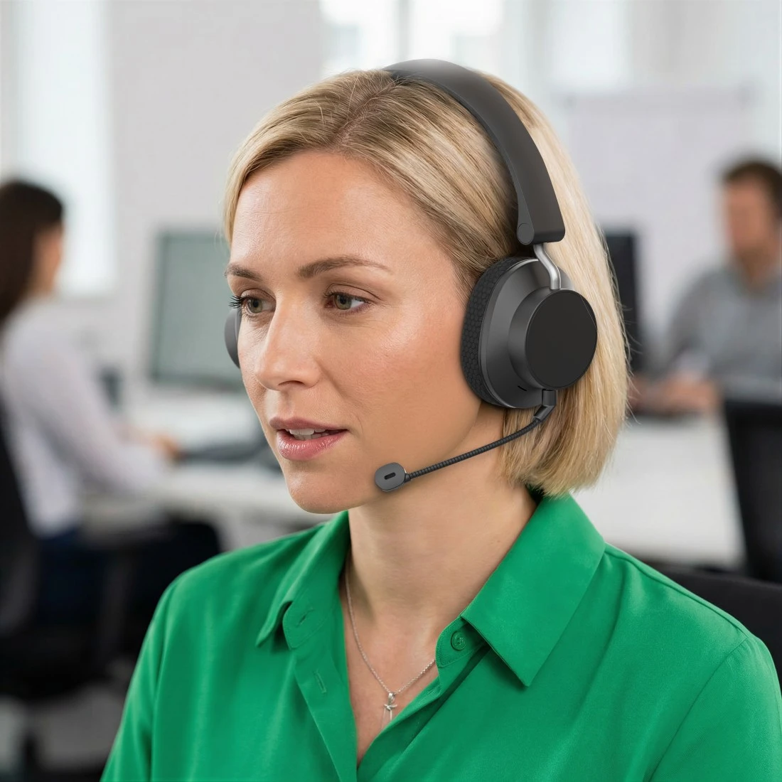 Charge and call at the same time: when the battery is empty, simply plug in the cable and carry on using the business headset. That's how modern offices work nowadays
