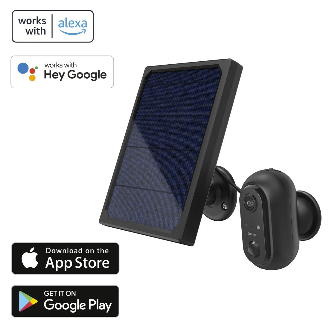 Strange noises in the garden at night? Unfamiliar cars in the courtyard entrance? With an outdoor surveillance camera, you can always see what’s happening around your house, in your courtyard, garden, horse stable, or anywhere else on your land – regardless of whether there’s an imminent threat or you simply want to feel completely safe. The Hama outdoor camera is equipped with a solar panel and battery and offers numerous applications when combined with the app and voice control. Of course, the smart camera is protected from water jets in accordance with IP65, and can therefore be mounted to an external façade without concerns.